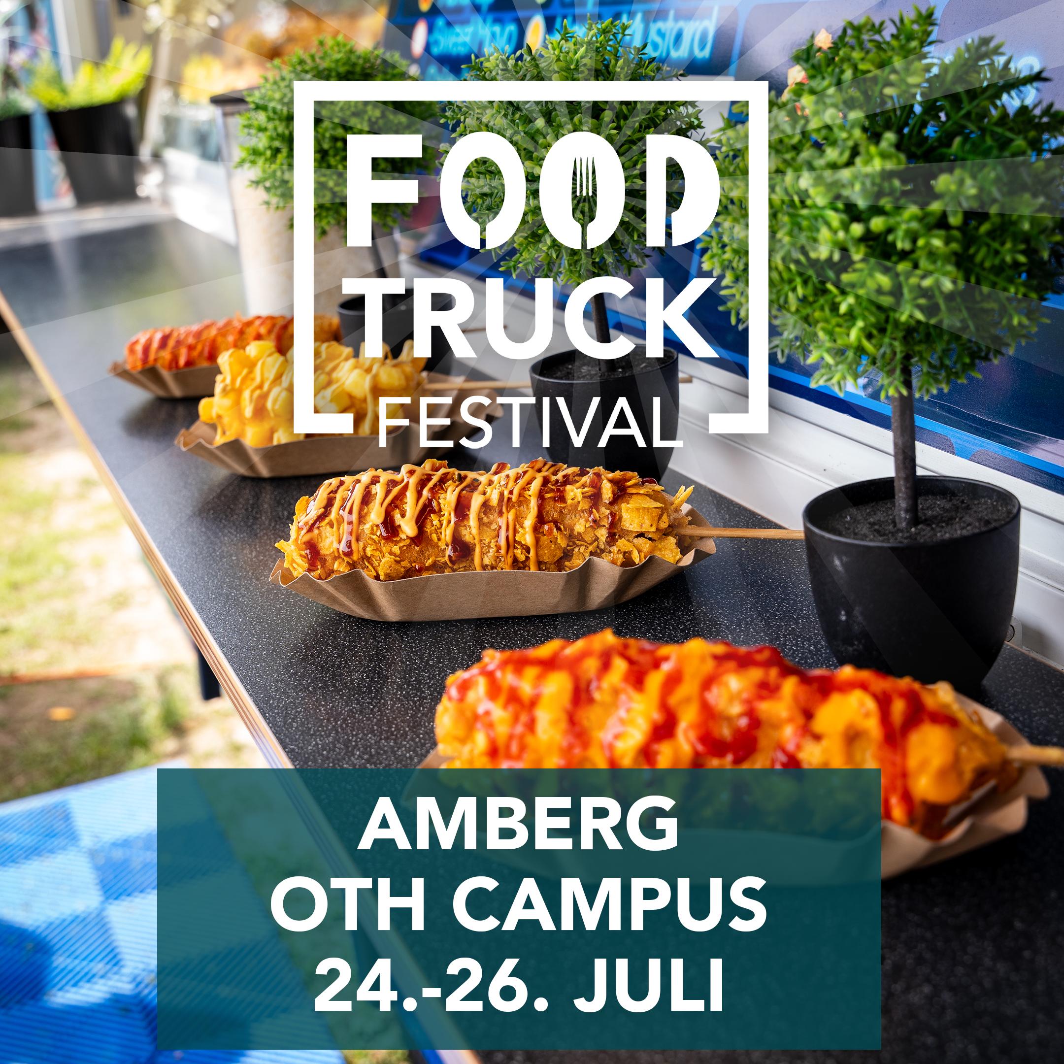 Mach dich bereit für ein kulinarisches Abenteuer der Extraklasse! Vom 24. bis 26. Juli verwandelt sich der Campus der OTH in Amberg in das ultimative Foodtruck-Paradies – das Original Foodtruck Festival ist wieder am Start und bringt Streetfood aus aller Welt direkt zu dir. UNeben den kulinarischen Highlights erwartet dich ein echtes Erlebnis! Genieße Live-Musik, einen Familientag mit Henna Tattoos, Kinderschminken mit Onirelia und eine große Hüpfburg – Spaß für die ganze Familie! Dazu eine Chillout-Area zum Relaxen, coole Cocktails und vieles mehr.